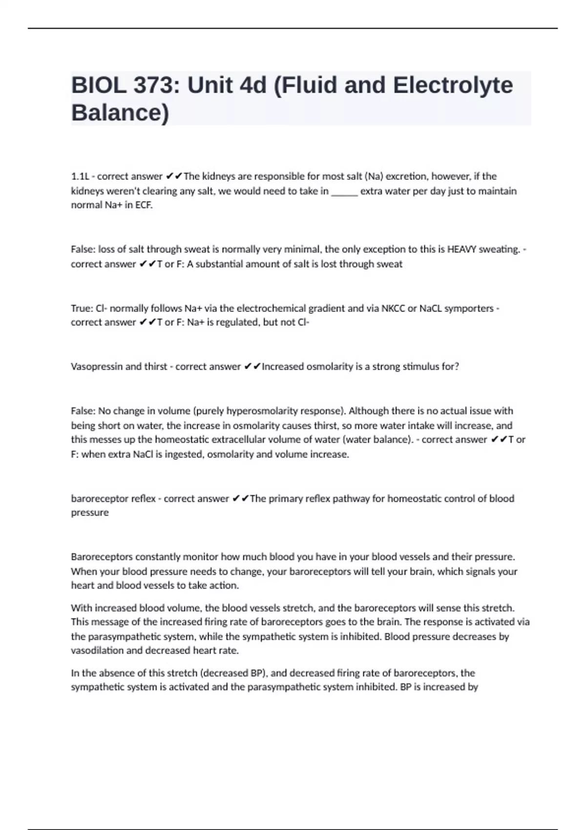 BIOL 373: Unit 4d (Fluid and Electrolyte Balance) questions & answers
