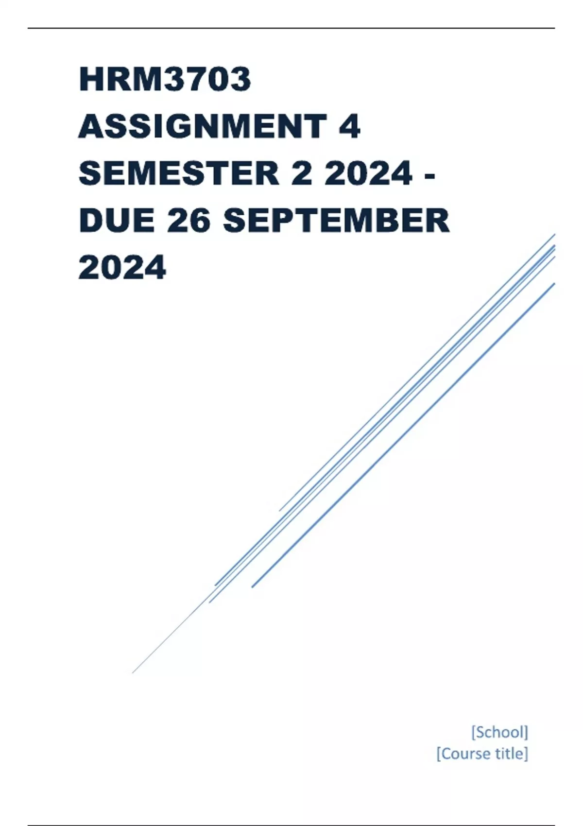 HRM3703 Assignment 4 Semester 2 2024 - DUE 26 September 2024.