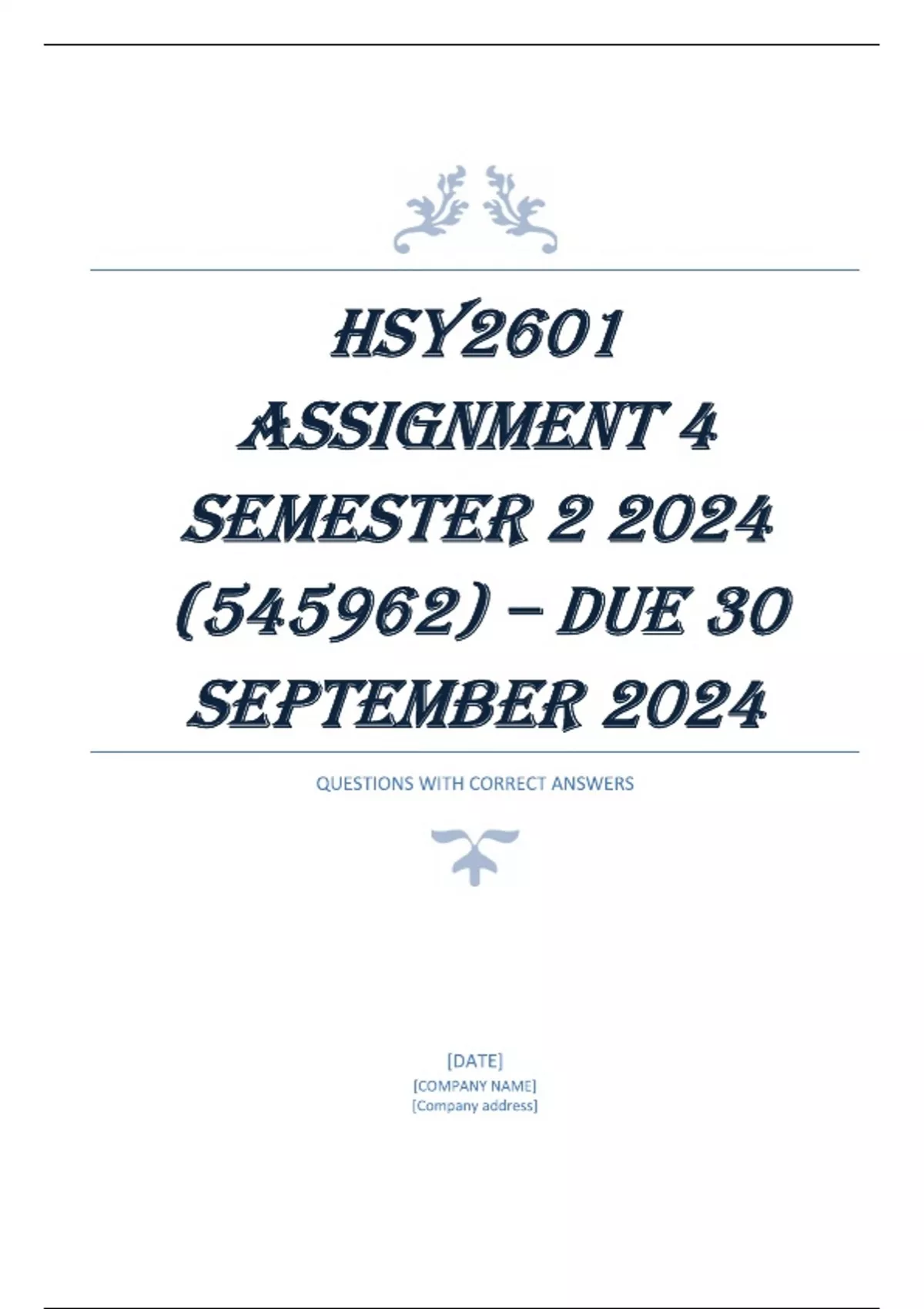 HSY2601 ASSIGNMENT 4 SEMESTER 2 2024 (545962) – DUE 30 SEPTEMBER 2024