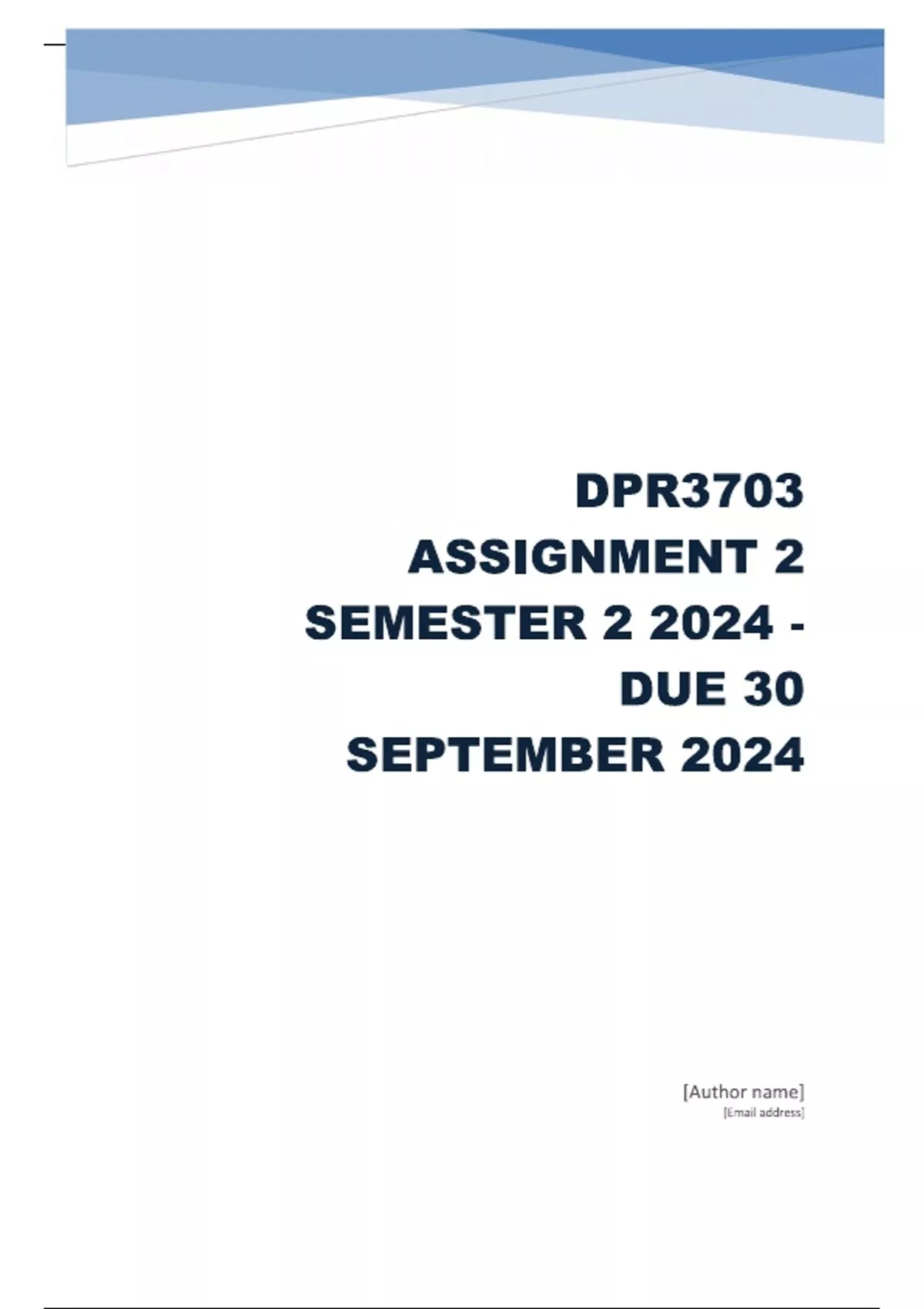 DPR3703 Assignment 2 (COMPLETE ANSWERS) Semester 2 2024 - DUE 30 September 2024