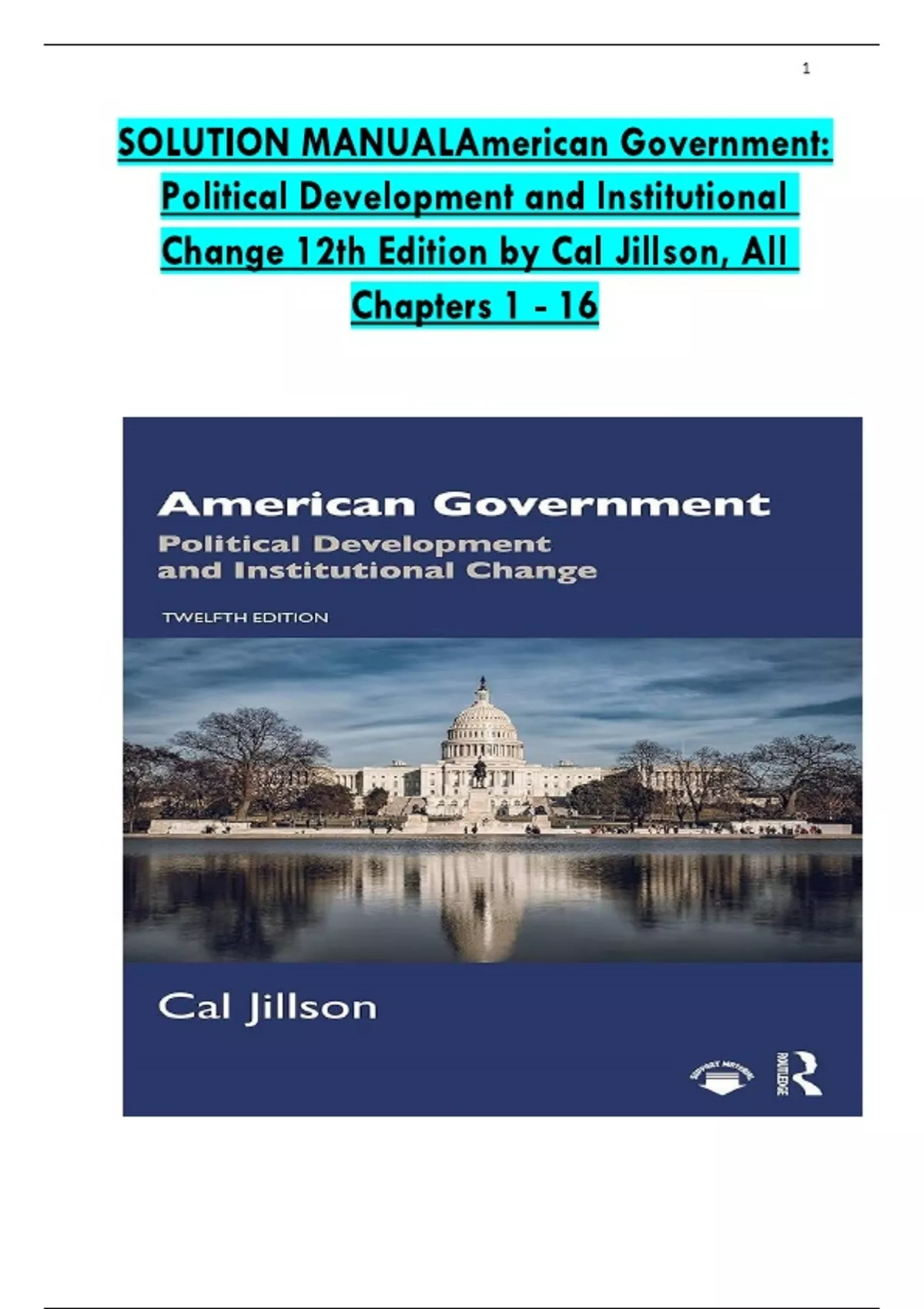 SOLUTION MANUAL For American Government: Political Development and Institutional Change 12th Edition by Cal Jillson, Verified Chapters 1 - 16, Complete