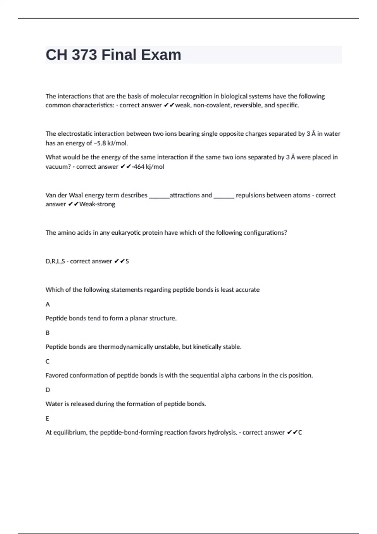 At equilibrium, the peptide-bond-forming reaction favors hydrolysis. - correct answer ✔✔C