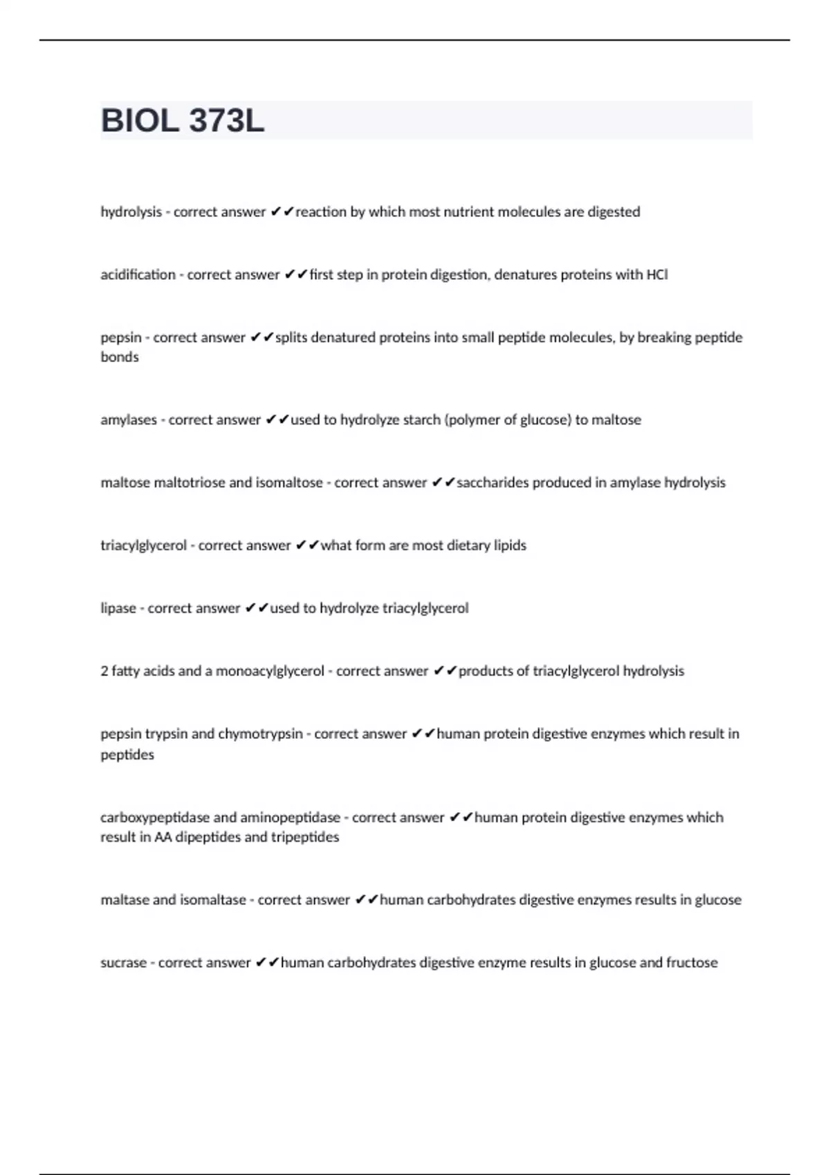 lipase - correct answer ✔✔used to hydrolyze triacylglycerol