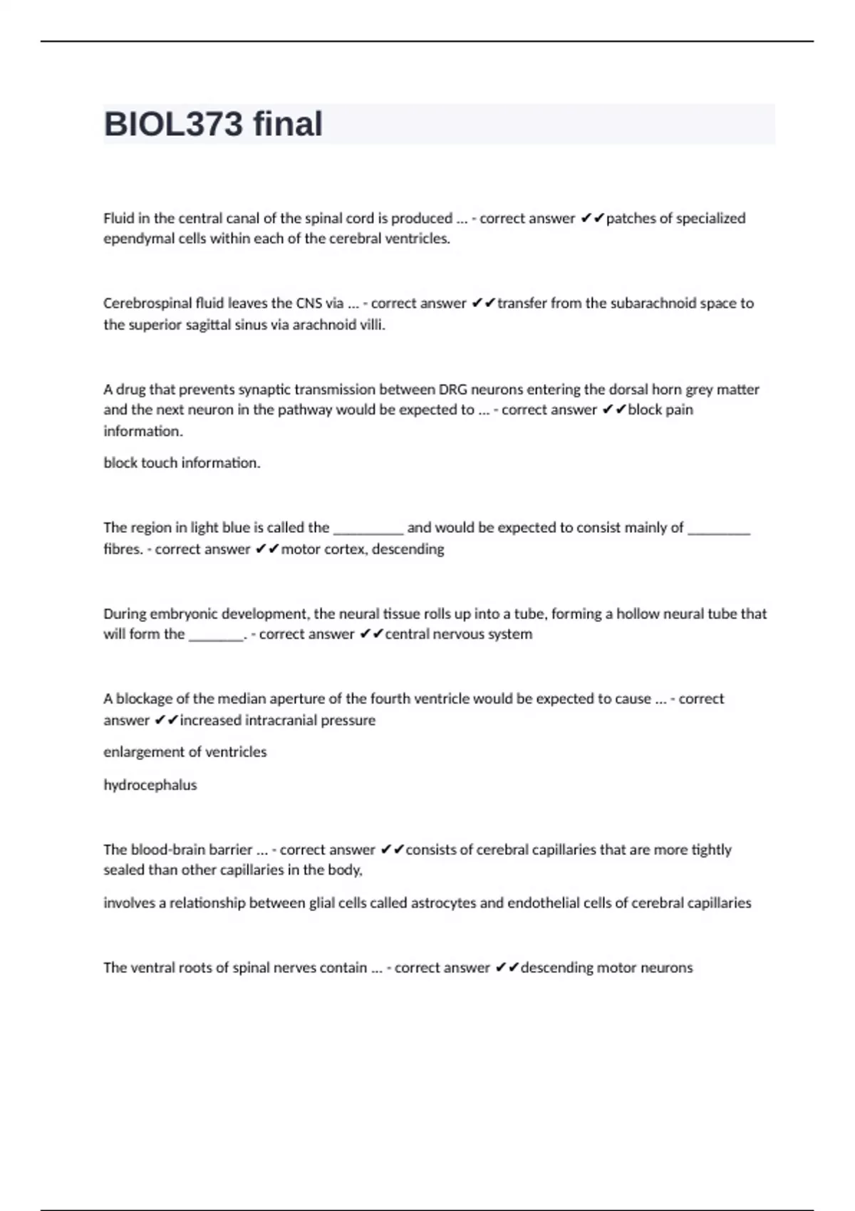 BIOL373 final questions with verified answers graded A+