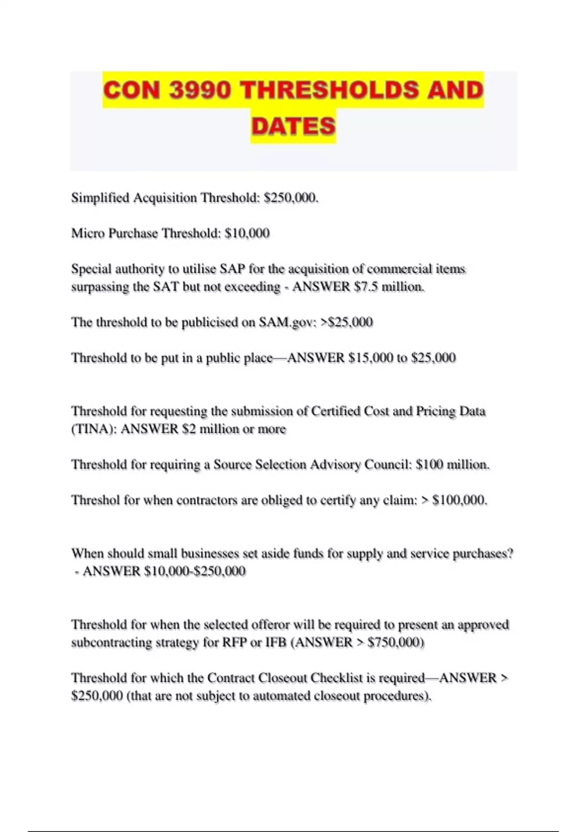 CON 3990 THRESHOLDS AND DATES