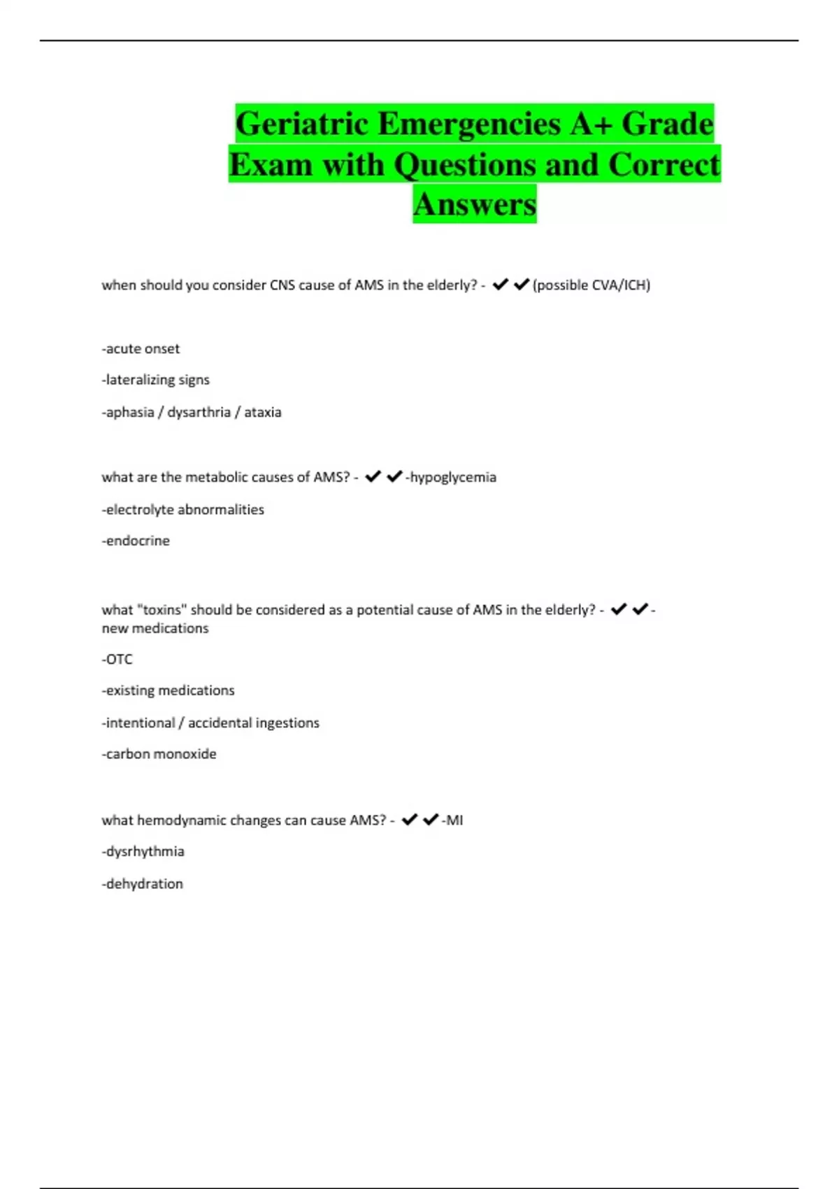Geriatric Emergencies A+ Grade