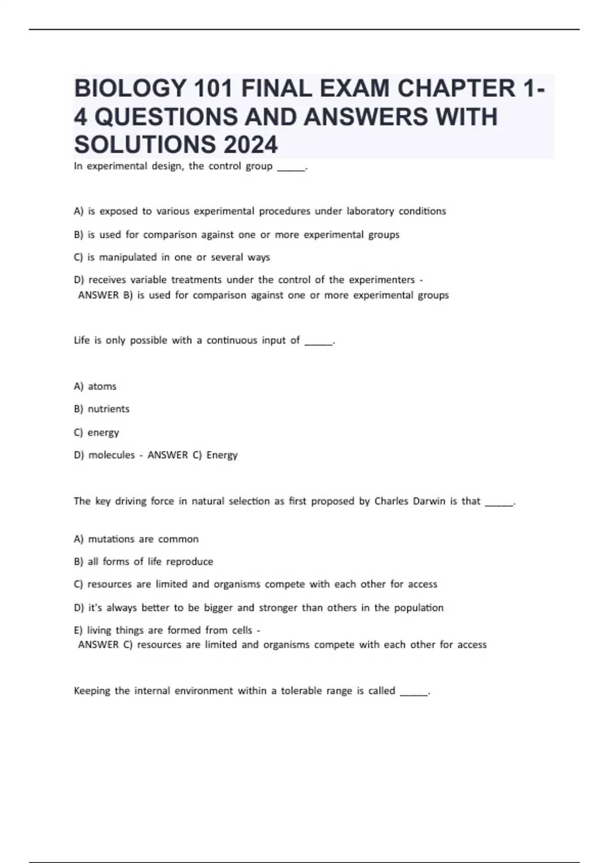 BIOLOGY 101 FINAL EXAM CHAPTER 1-4 QUESTIONS AND ANSWERS WITH SOLUTIONS 2024