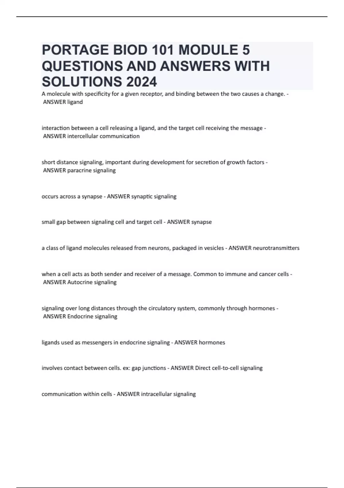 PORTAGE BIOD 101 MODULE 5 QUESTIONS AND ANSWERS WITH SOLUTIONS 2024