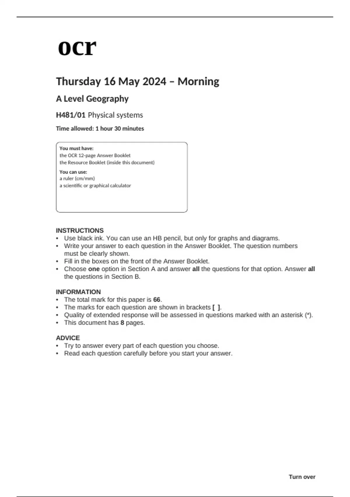 • The total mark for this paper is 66.