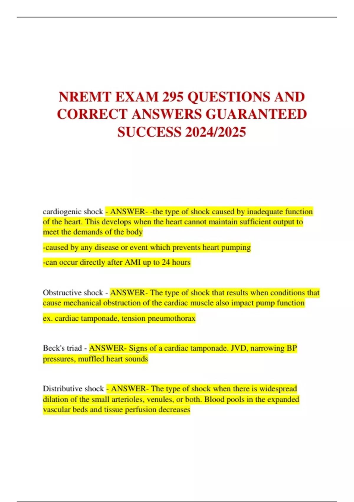 Obstructive shock - ANSWER- The type of shock that results when conditions that