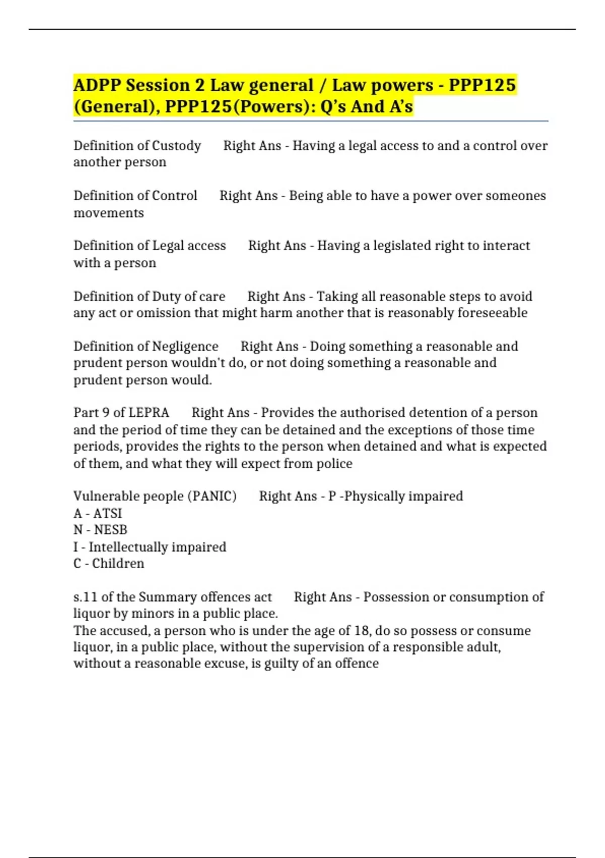 s.206 of LEPRA Right Ans - Police have the power to detain an intoxicated