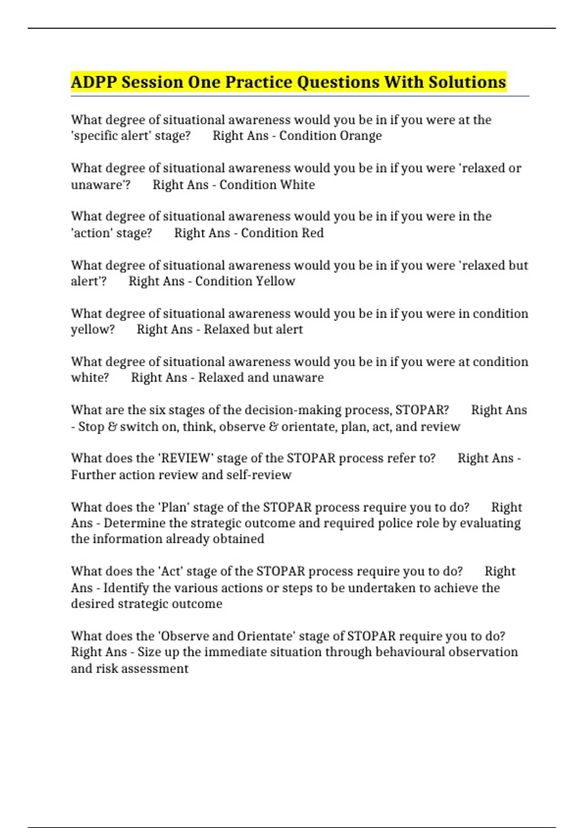 ADPP Session One Practice Questions With Solutions