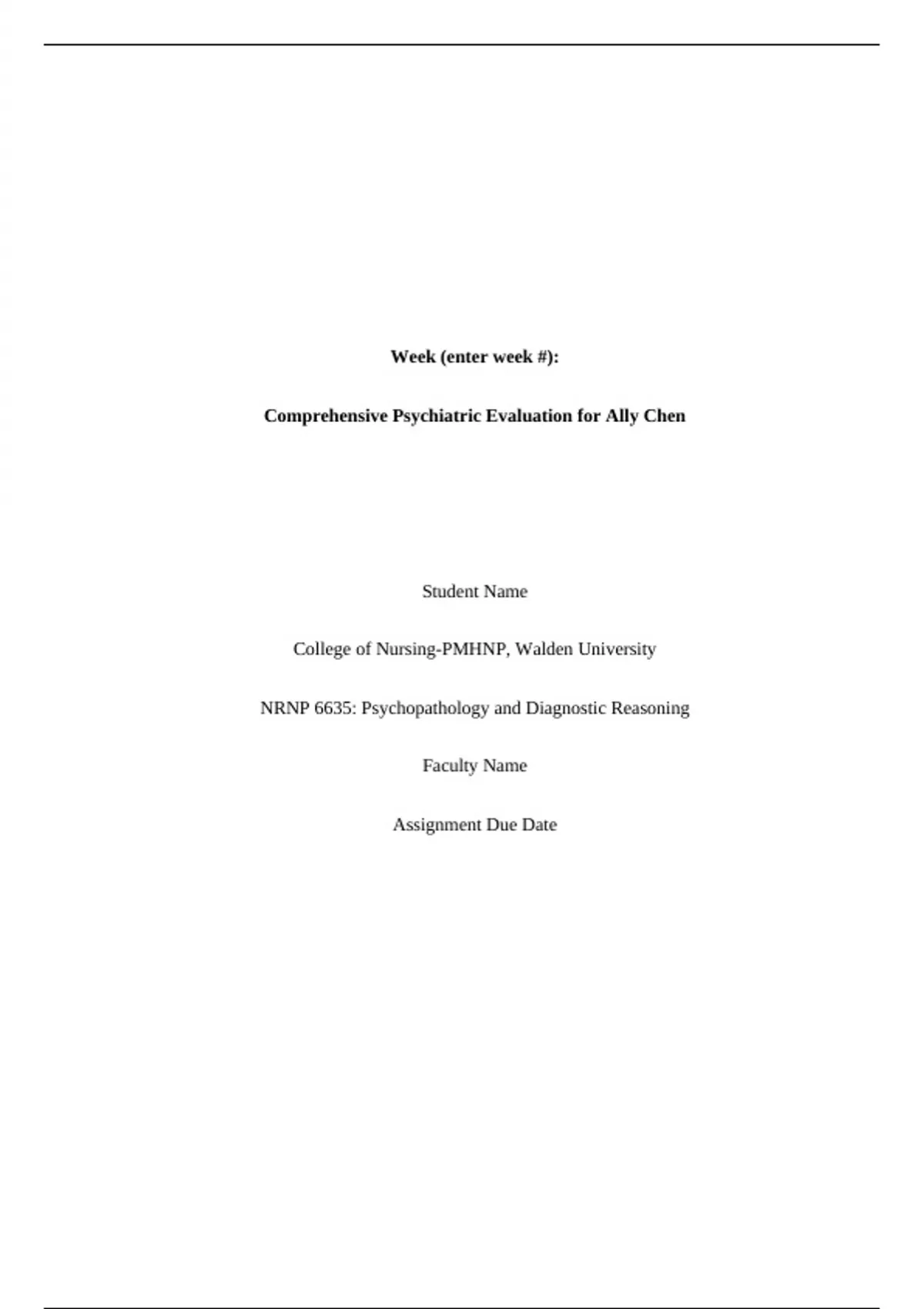 , NRNP/PRAC 6635 Comprehensive Pychiatric Evaluation Template