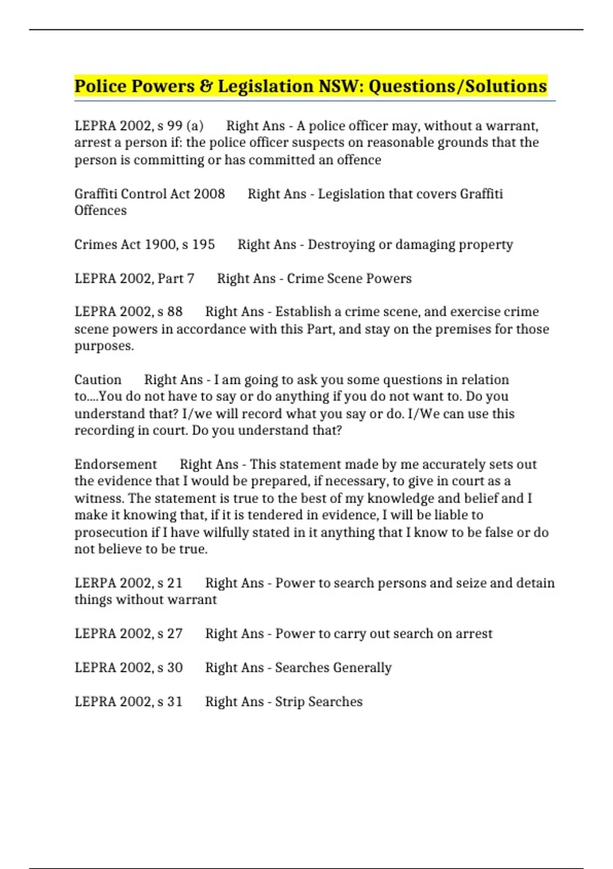 LEPRA 2002, Part 7 Right Ans - Crime Scene Powers