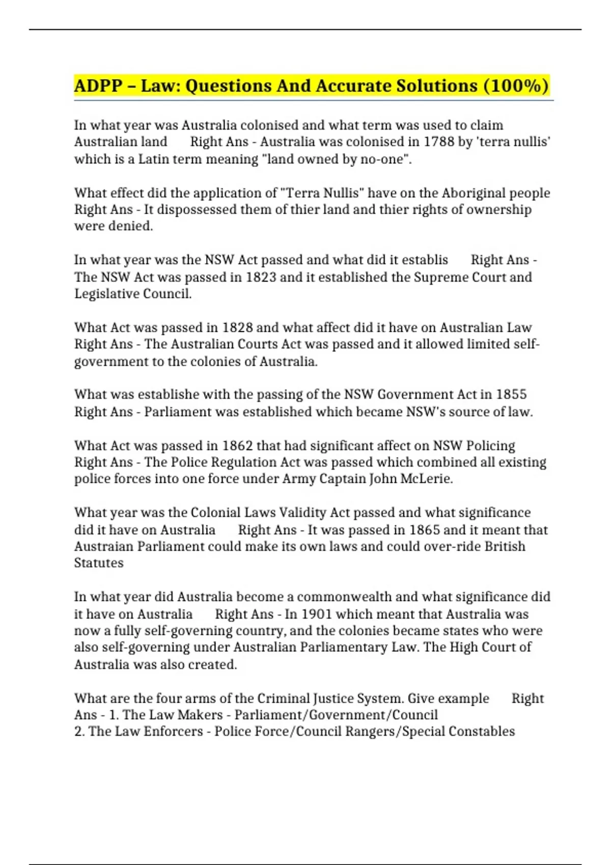 ADPP – Law: Questions And Accurate Solutions (100%)