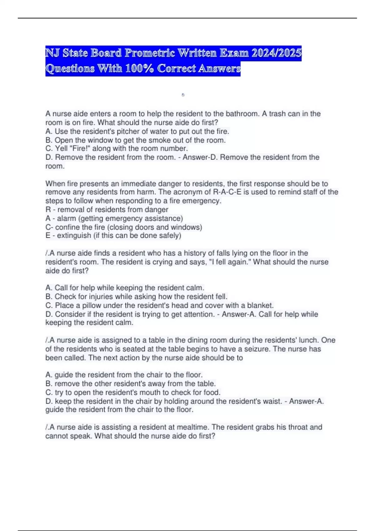 /.A nurse aide finds a resident who has a history of falls lying on the floor in the
