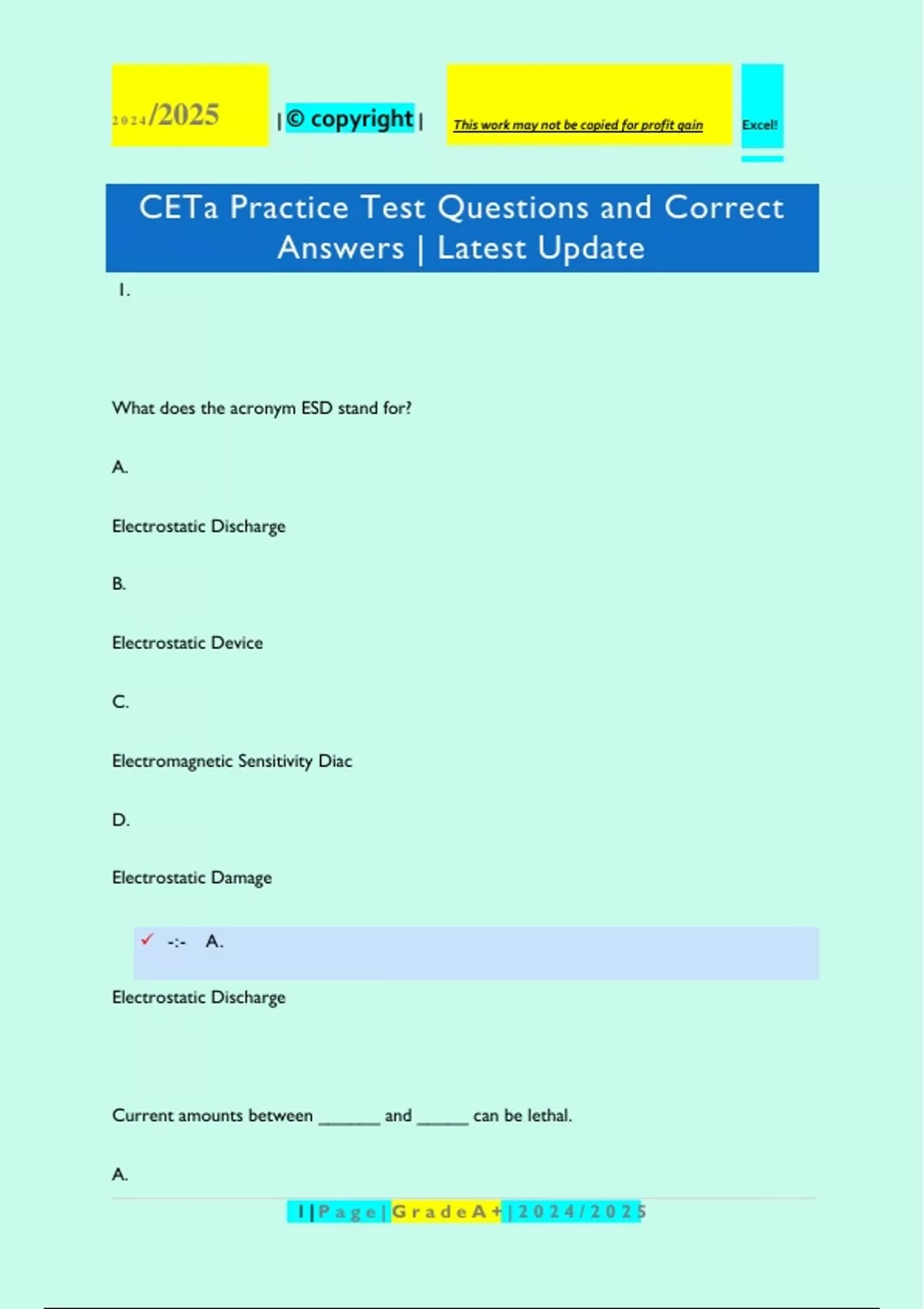 , 2024 /2025 | © copyright | This work may not be copied for profit gain Excel!