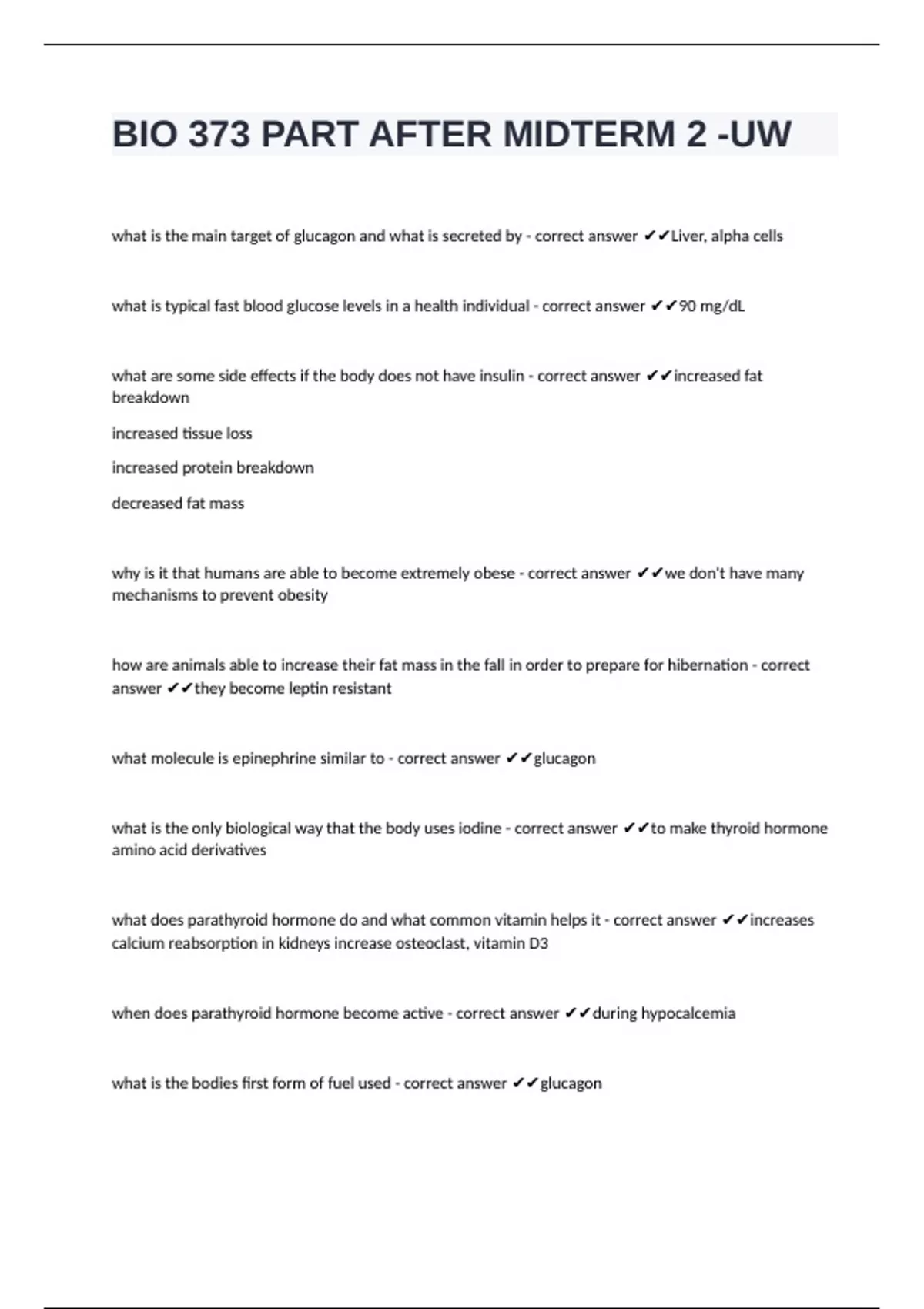 BIO 373 PART AFTER MIDTERM 2 -UW questions well answered