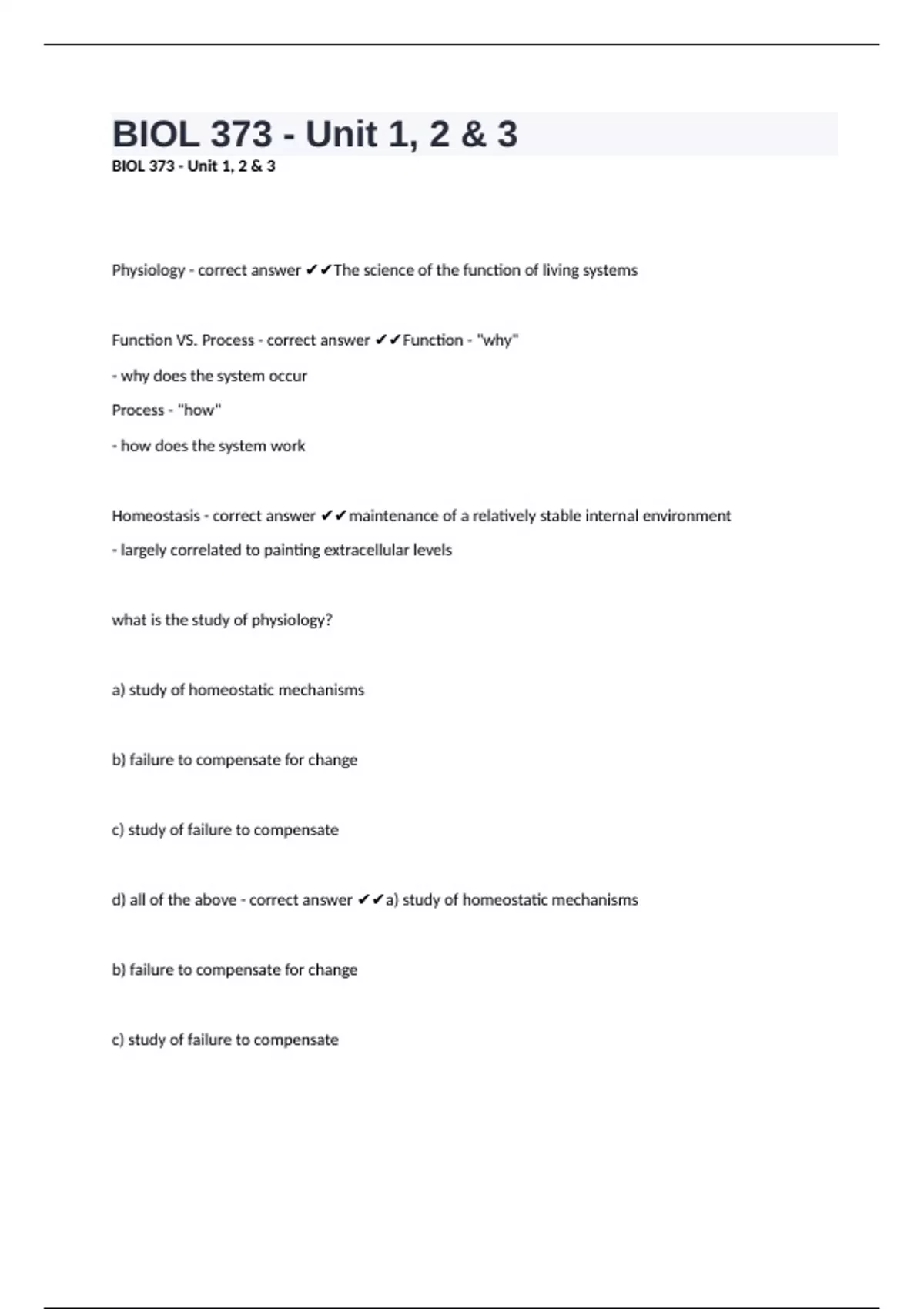 d) all of the above - correct answer ✔✔a) study of homeostatic mechanisms