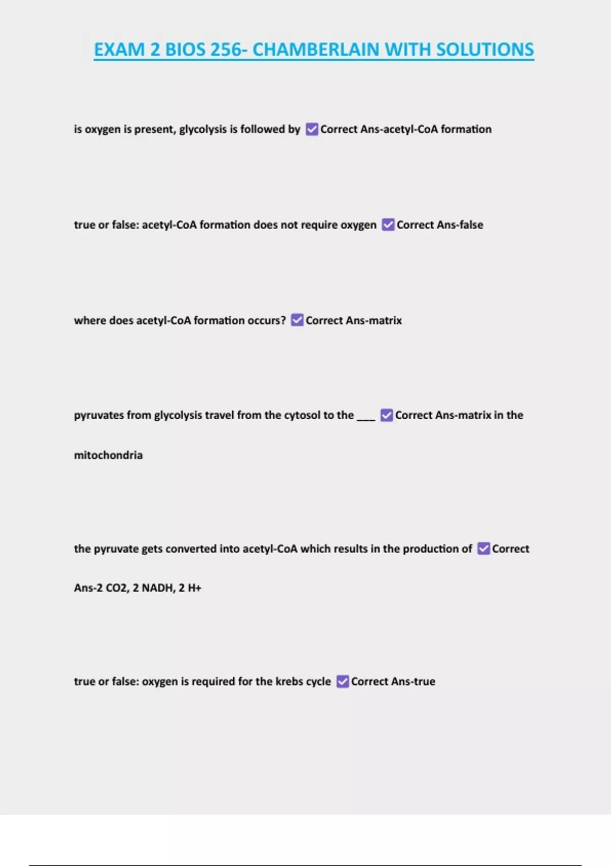 , EXAM 2 BIOS 256- CHAMBERLAIN WITH SOLUTIONS