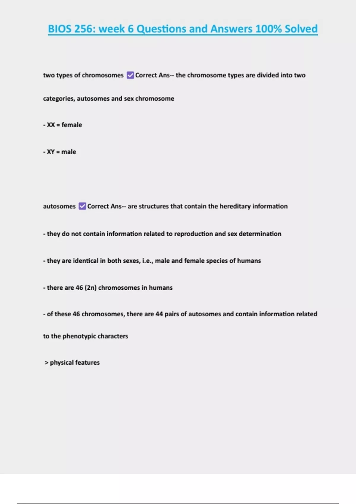, BIOS 256: week 6 Questions and Answers 100% Solved