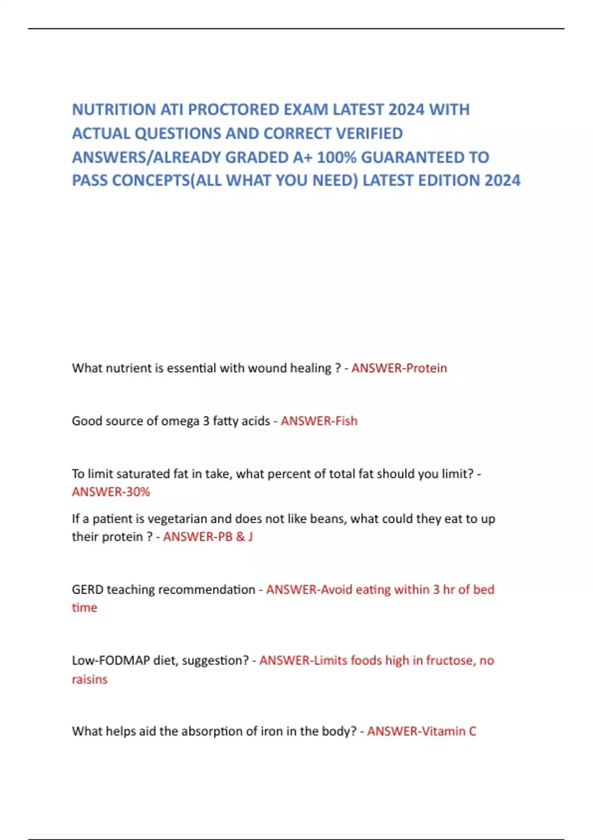 ACTUAL QUESTIONS AND CORRECT VERIFIED