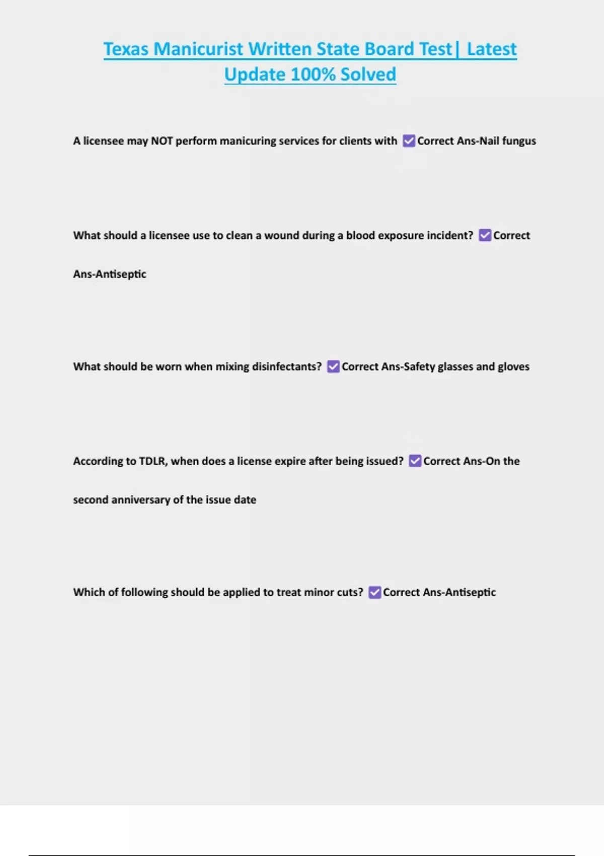 , Texas Manicurist Written State Board Test| Latest