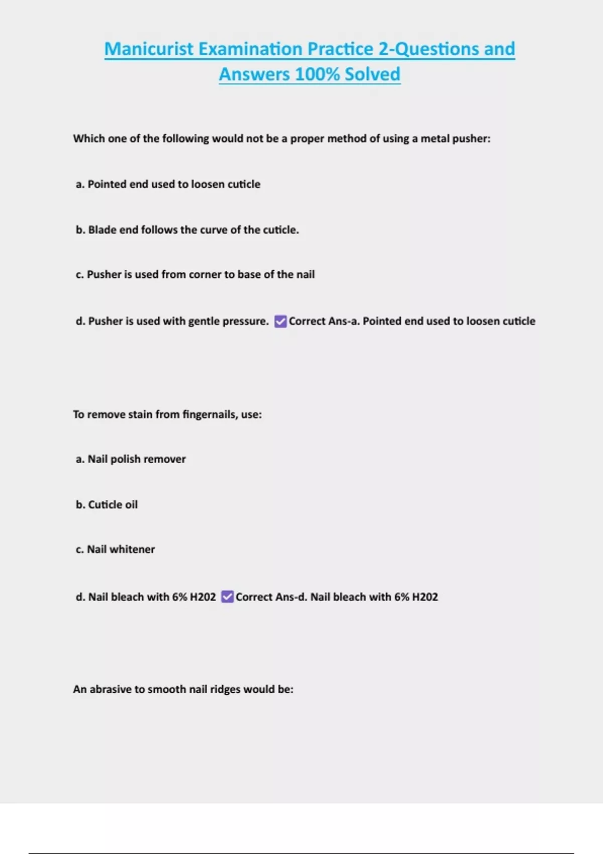 , Manicurist Examination Practice 2-Questions and