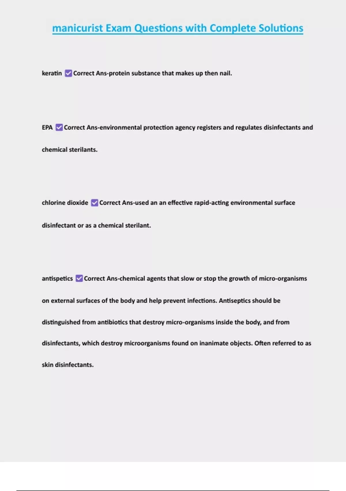 , manicurist Exam Questions with Complete Solutions