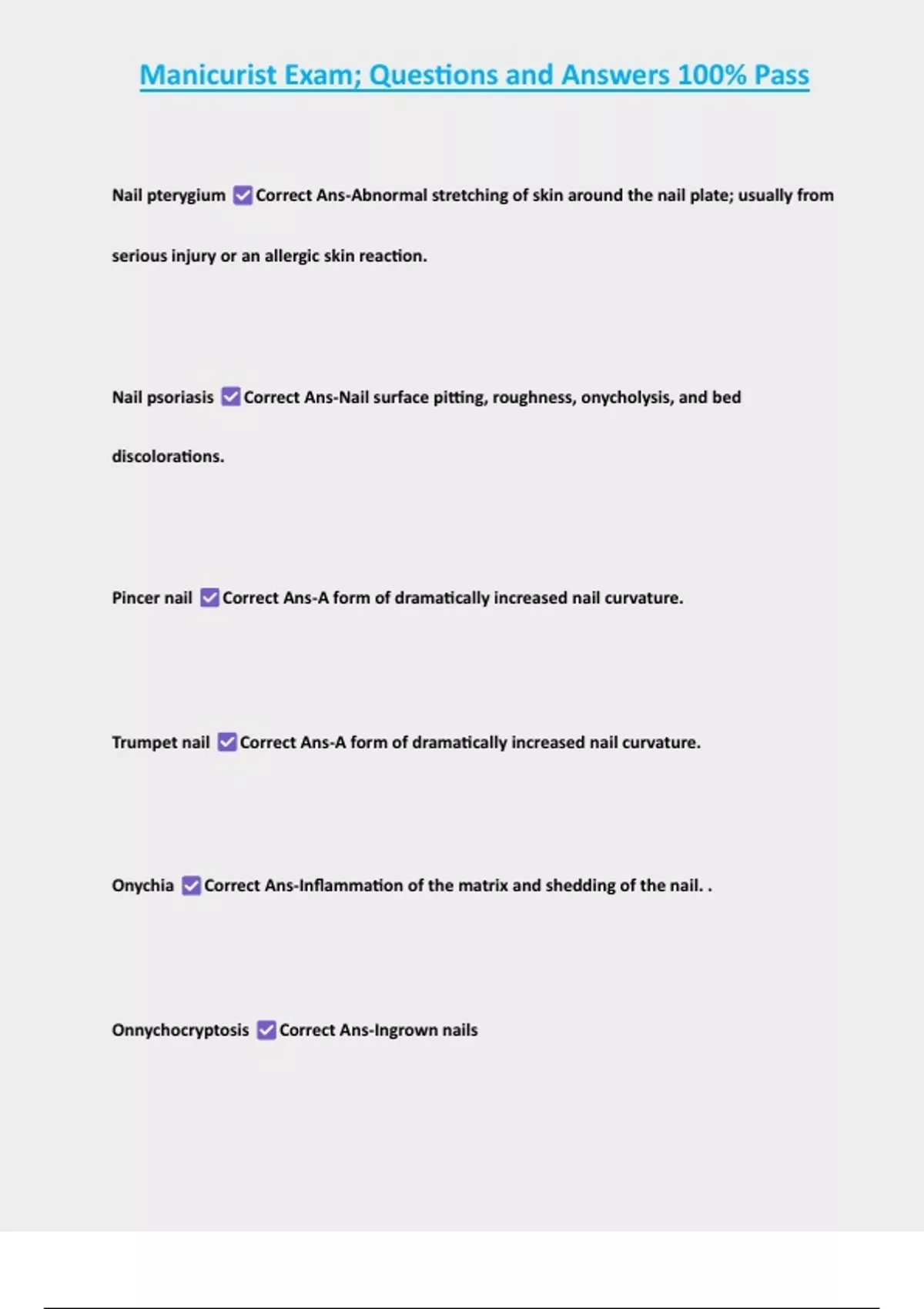 Onycholysis Correct Ans-Separation of the nail plate and bed, often due to physical injury