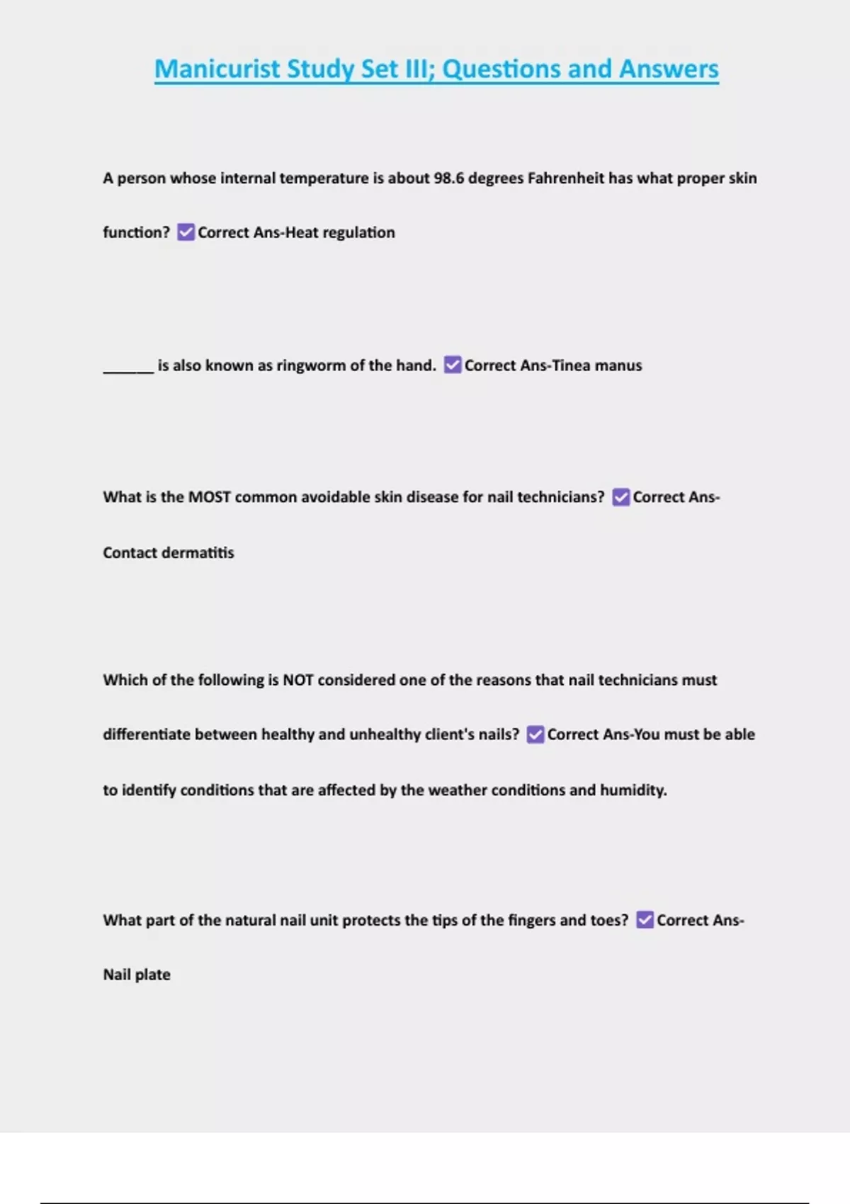 , Manicurist Study Set III; Questions and Answers