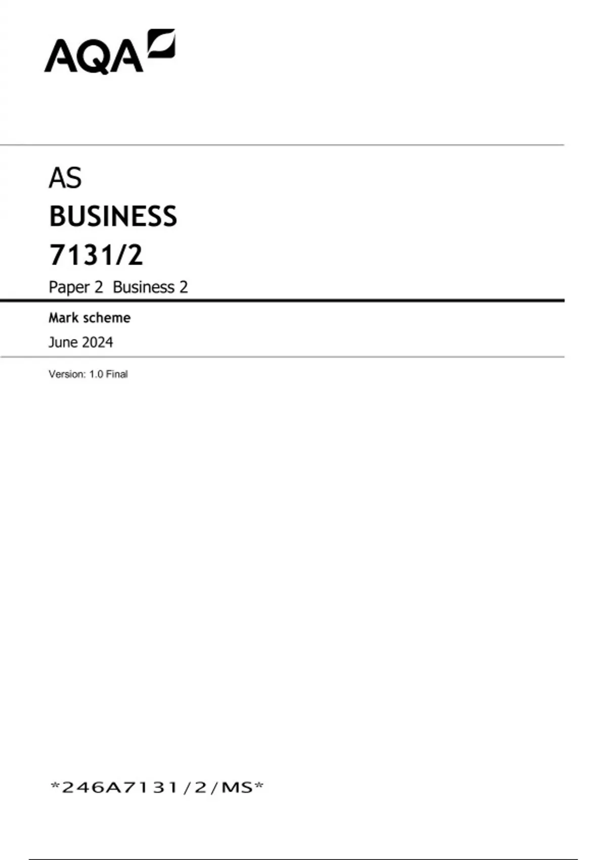 AQA AS BUSINESS Paper 2 JUNE 2024 QUESTION PAPER AND MARK SCHEME