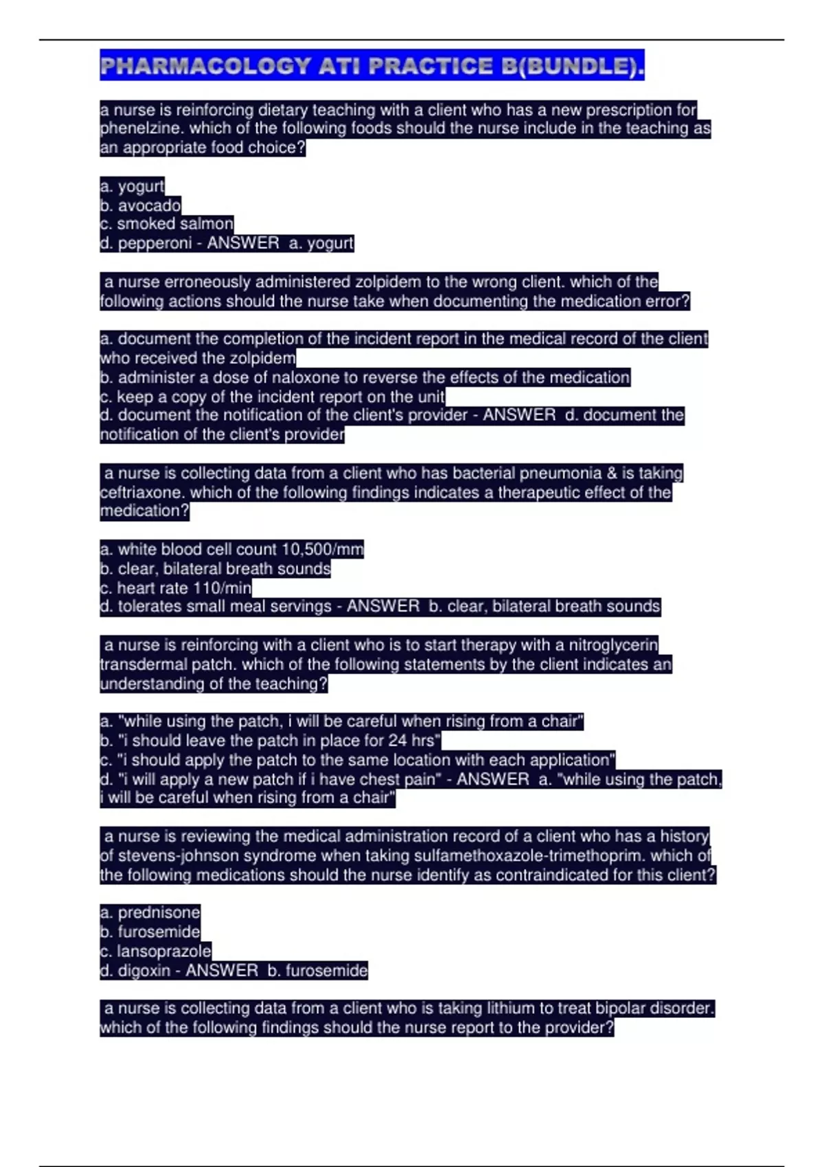 PHARMACOLOGY ATI PRACTICE B(BUNDLE).