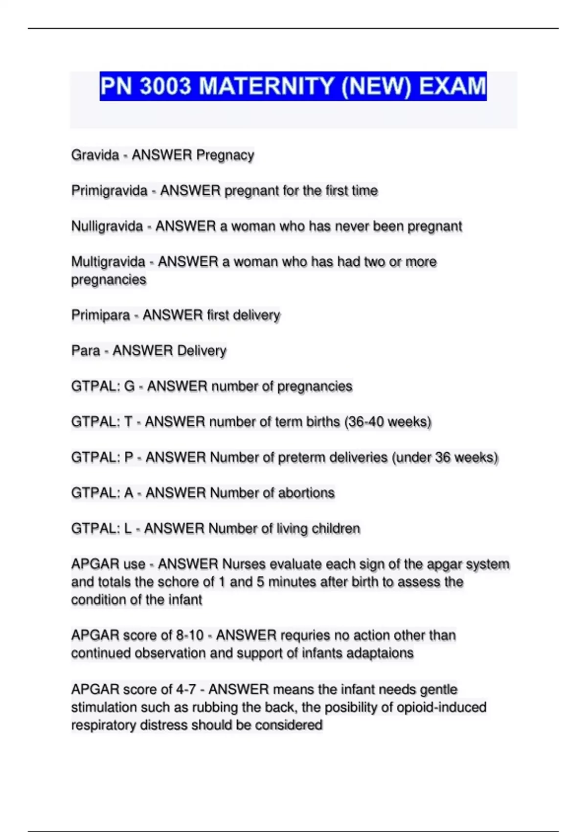 Newborn is born at 5 mins. what is the APGAR score? - ANSWER