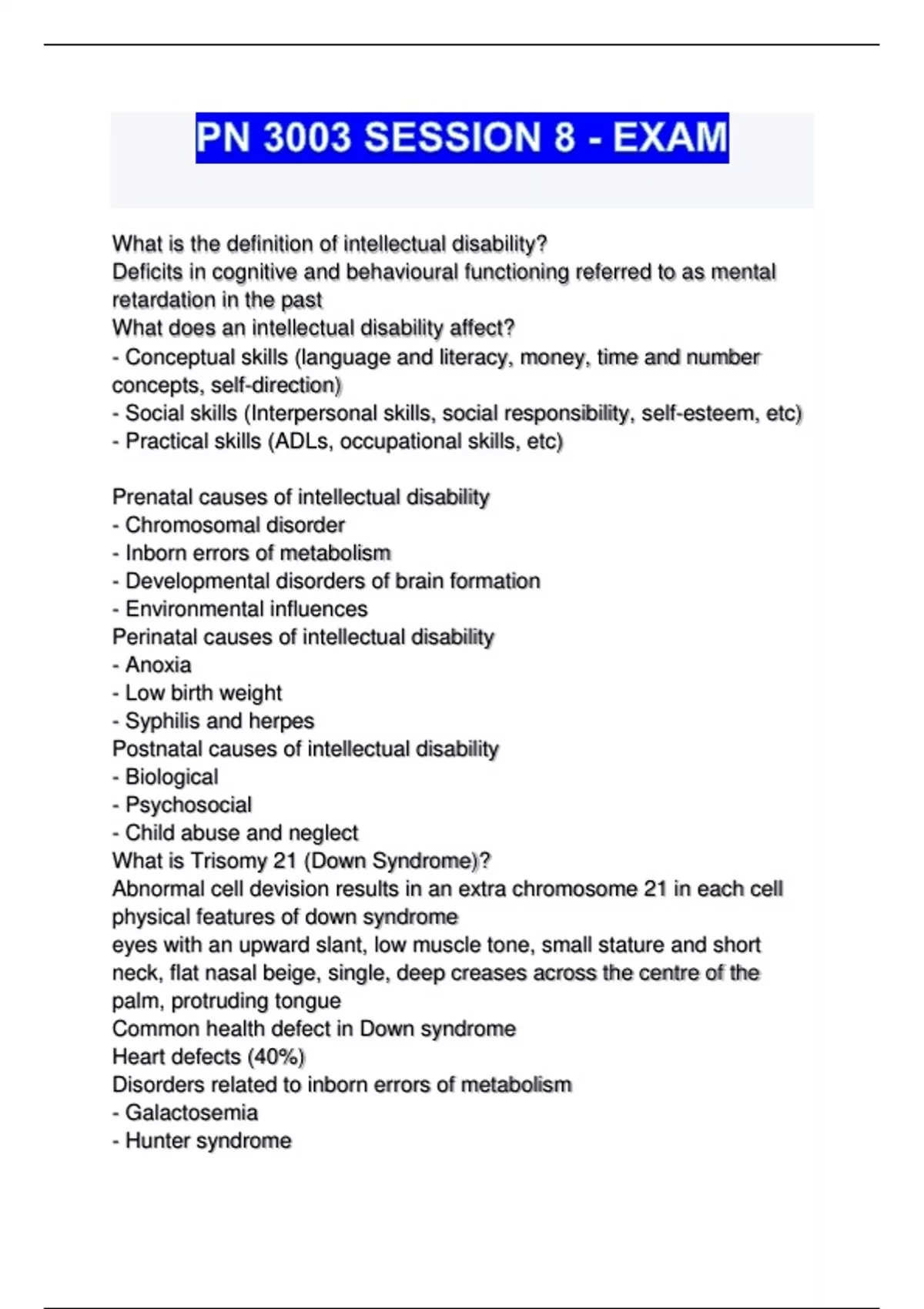 PN 3003 SESSION 8 - EXAM...