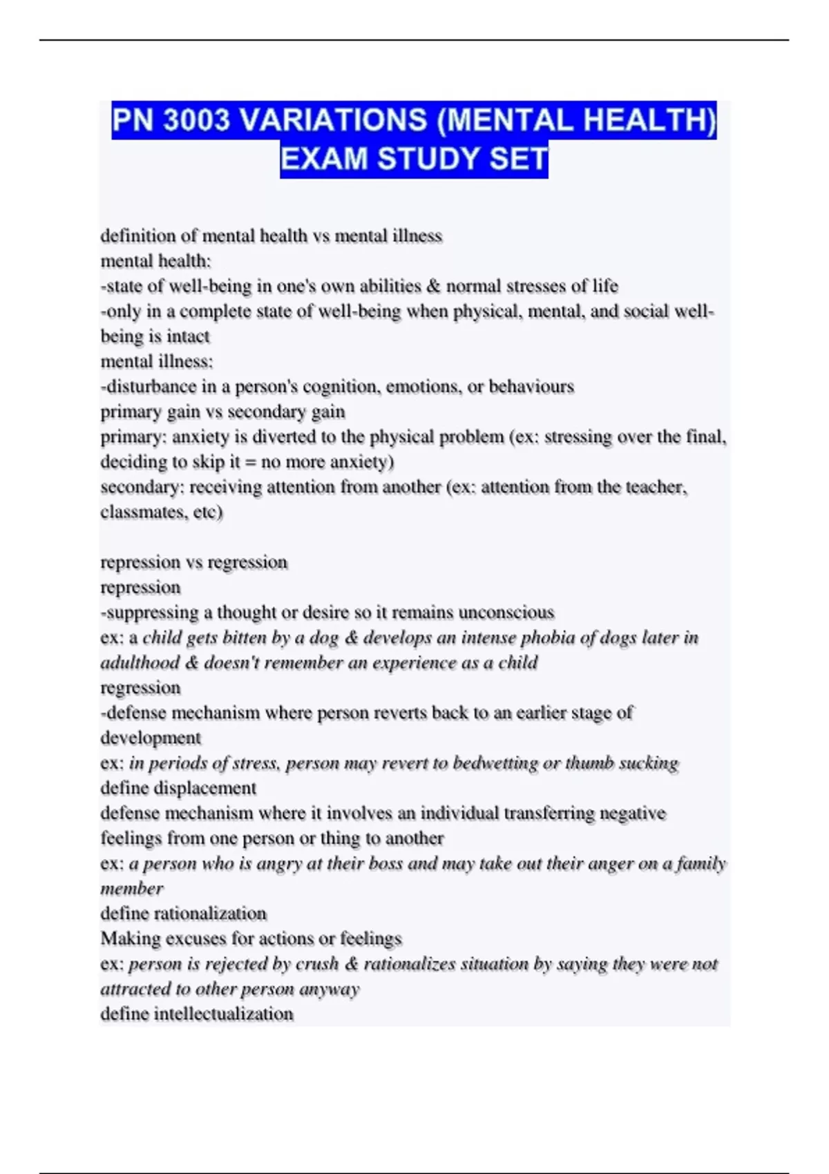 primary: anxiety is diverted to the physical problem (ex: stressing over the final,