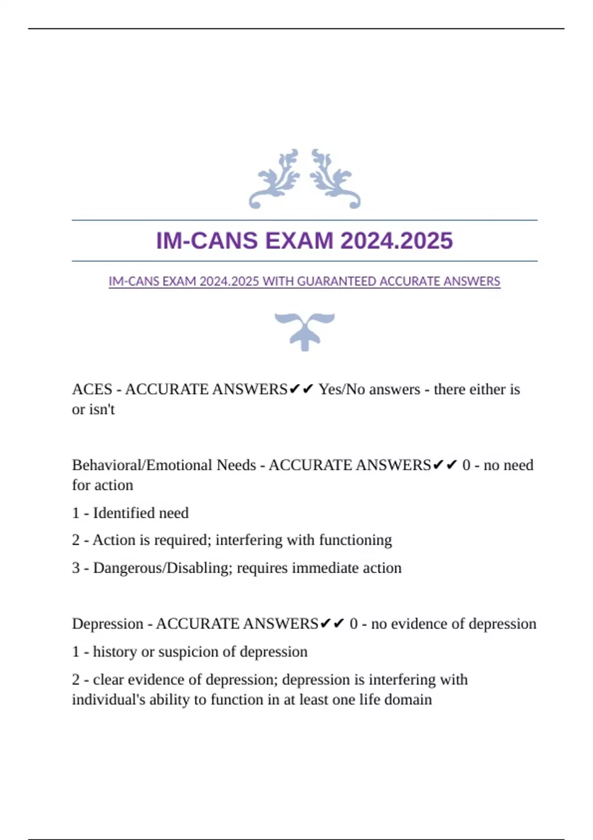 IM-CANS EXAM 2024.2025 WITH GUARANTEED ACCURATE ANSWERS