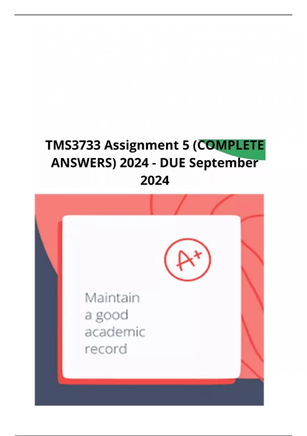 TMS3733 Assignment 5 (COMPLETE ANSWERS) 2024 - DUE September 2024