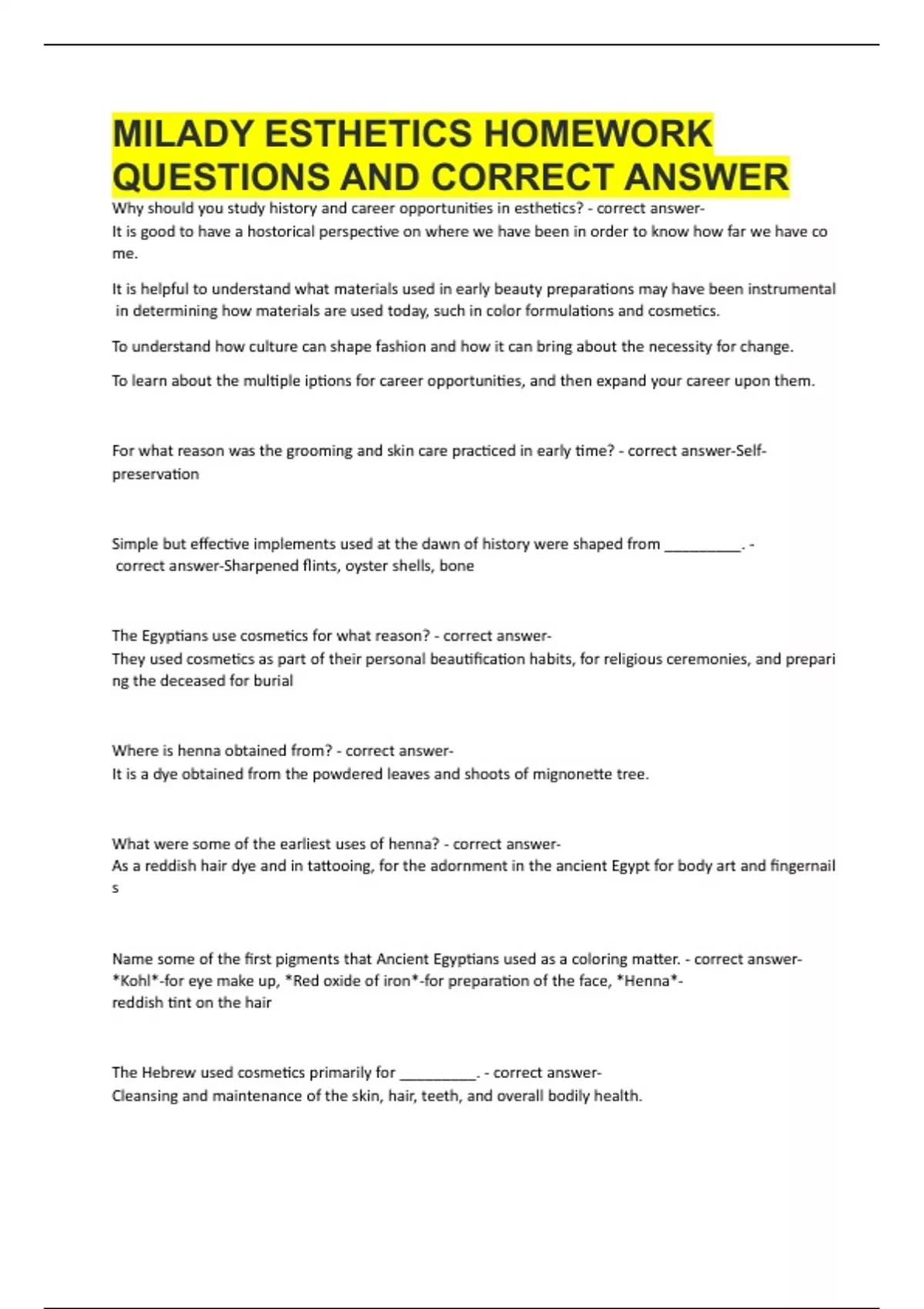 MILADY ESTHETICS HOMEWORK