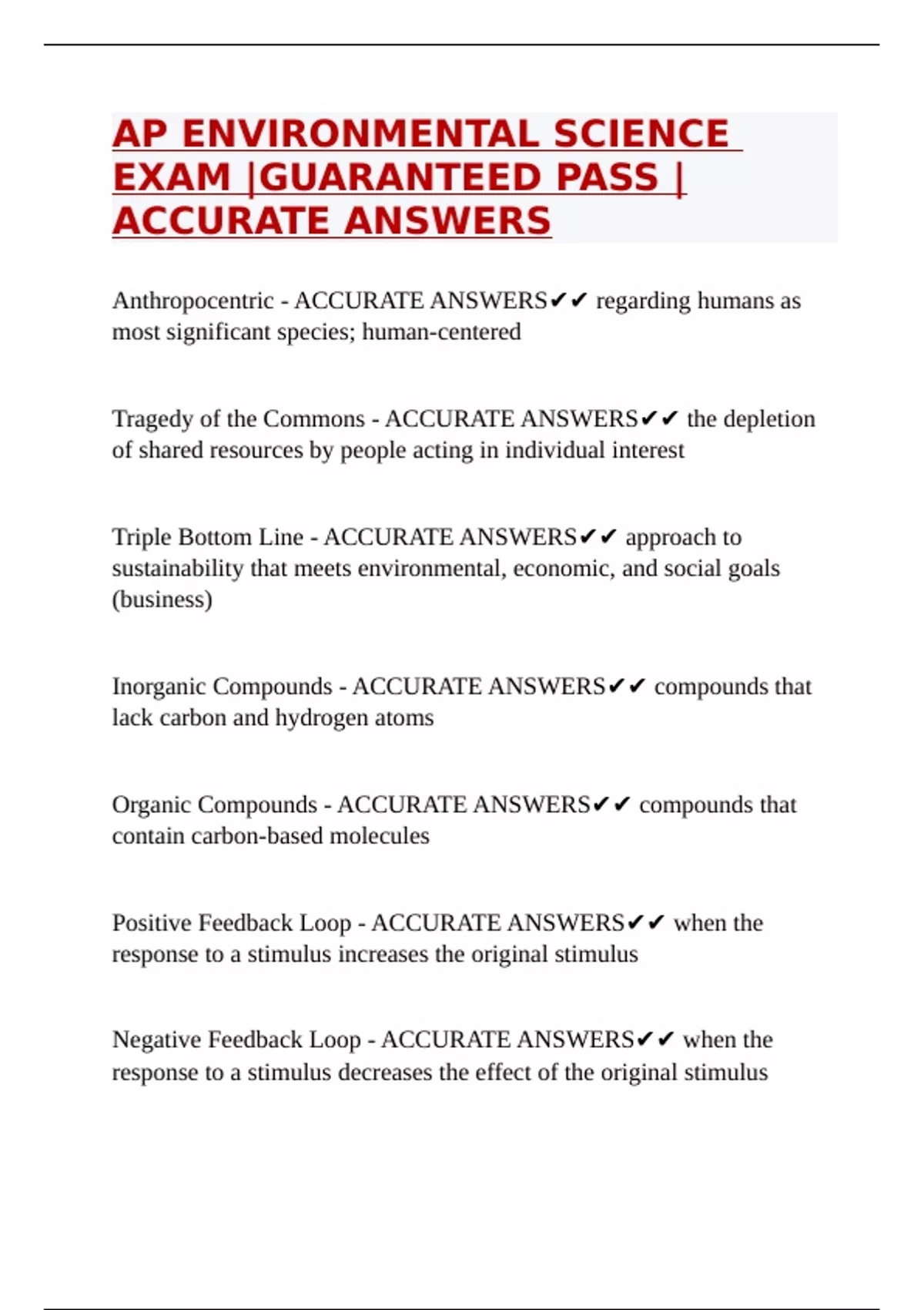 Anthropocentric - ACCURATE ANSWERS✔✔ regarding humans as