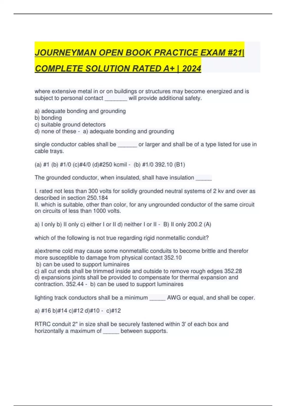 (a) #1 (b) #1/0 (c)#4/0 (d)#250 kcmil - (b) #1/0 392.10 (B1)