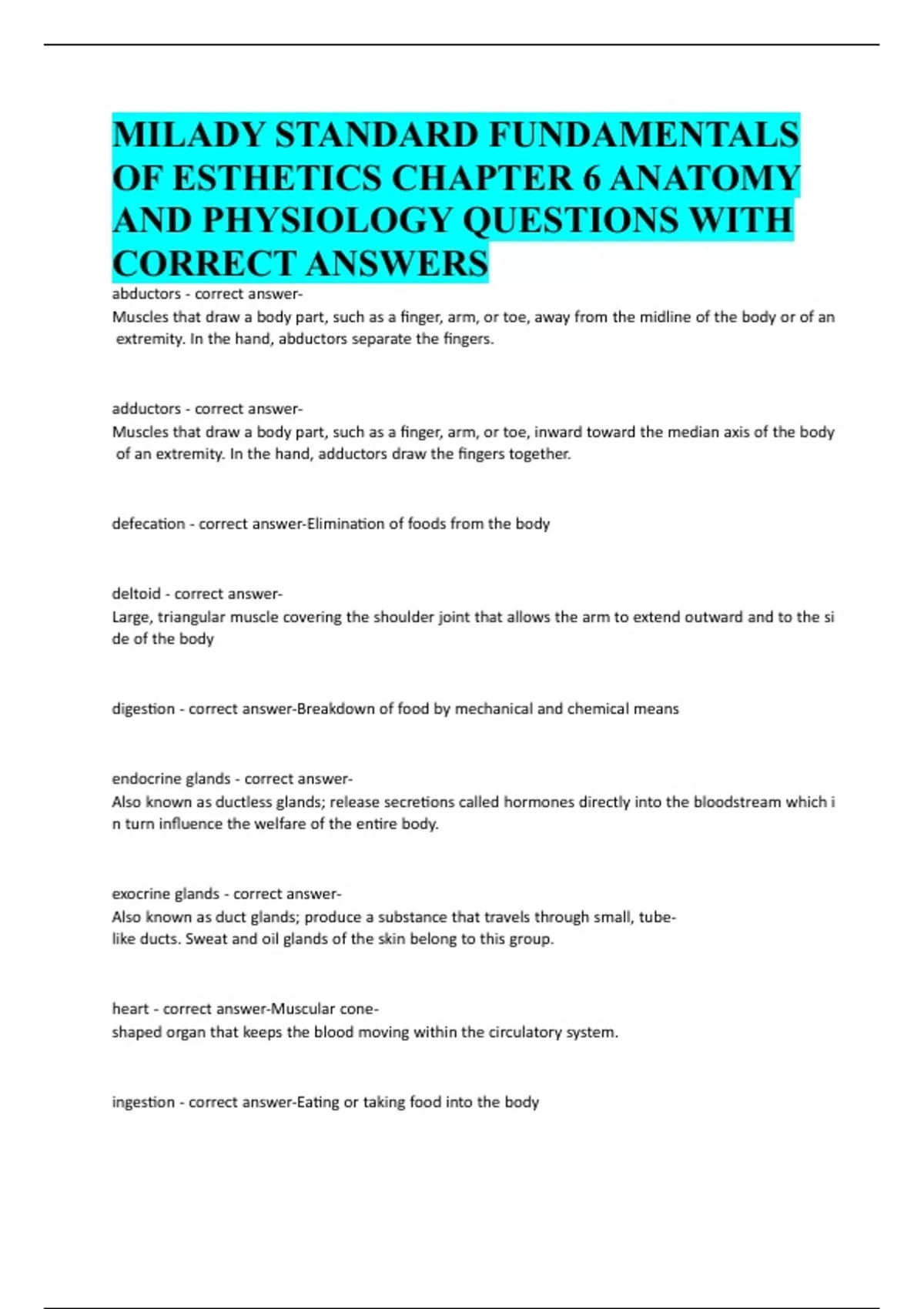 AND PHYSIOLOGY QUESTIONS WITH