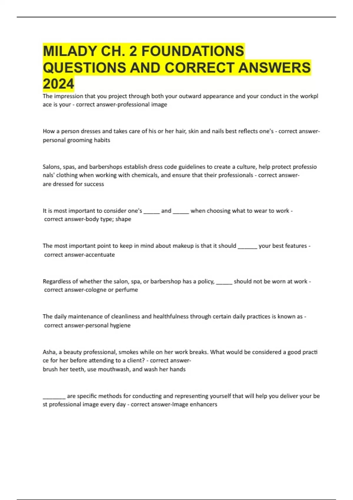 MILADY CH. 2 FOUNDATIONS QUESTIONS AND CORRECT ANSWERS 2024