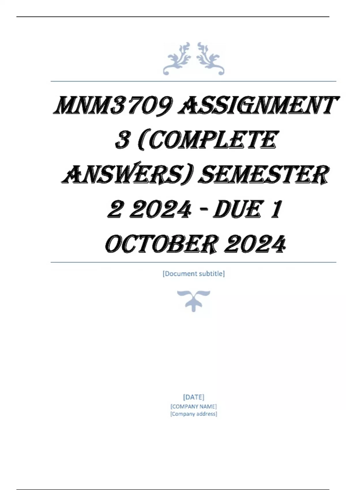 MNM3709 ASSIGNMENT 3 (COMPLETE ANSWERS) SEMESTER 2 2024 - DUE 1 OCTOBER 2024