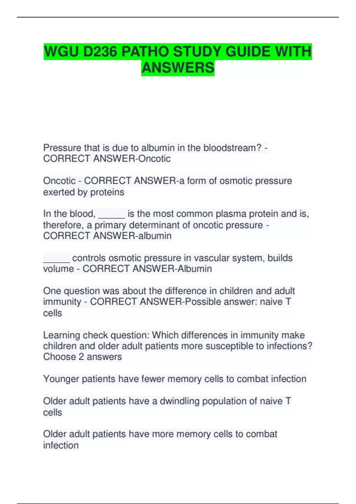 WGU D236 PATHO STUDY GUIDE WITH ANSWERS