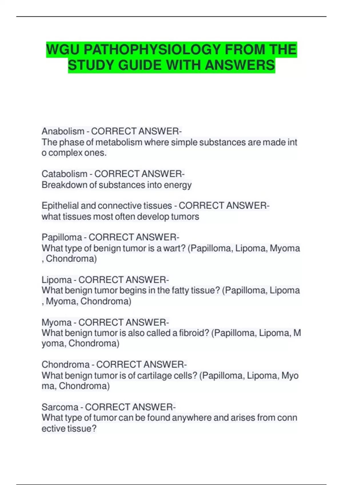 WGU PATHOPHYSIOLOGY FROM THE STUDY GUIDE WITH ANSWERS