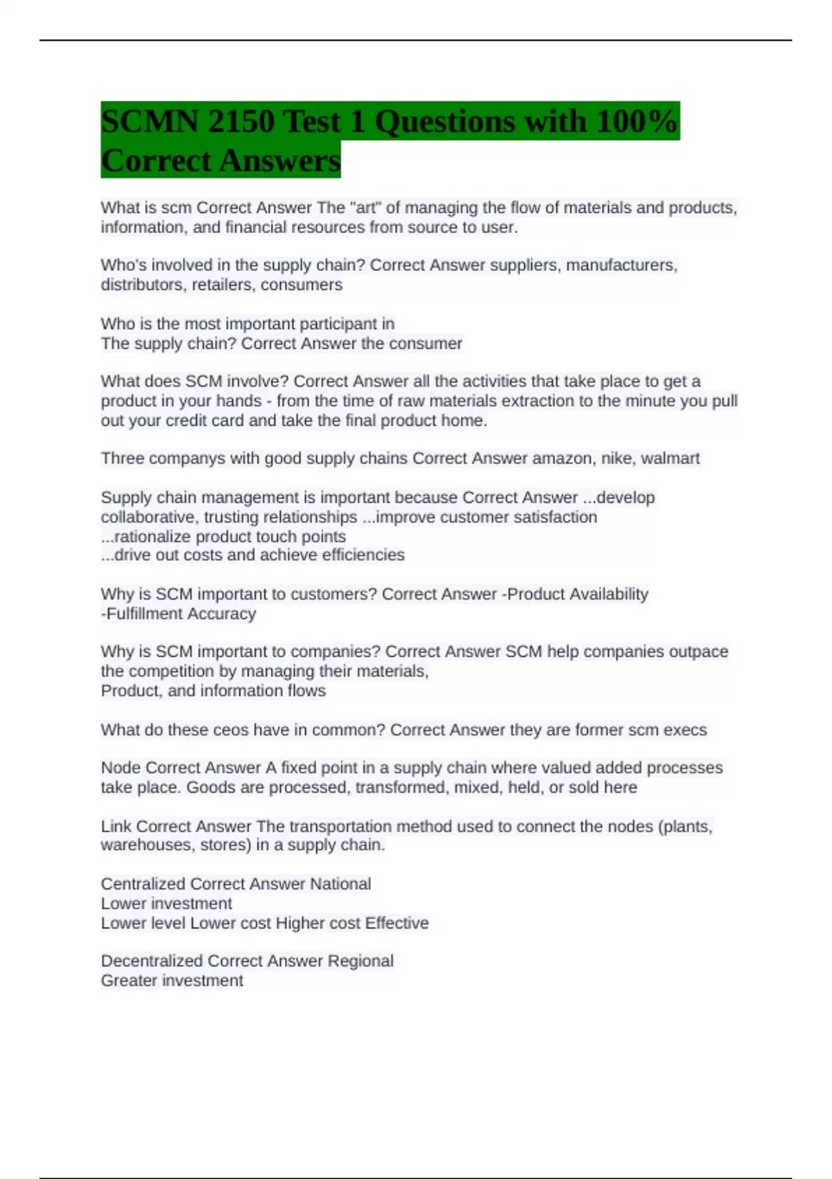 Supply chain management is important because Correct Answer ...develop