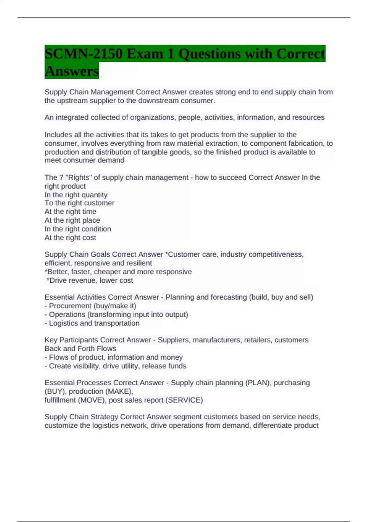 Supply Chain Management Correct Answer creates strong end to end supply chain from