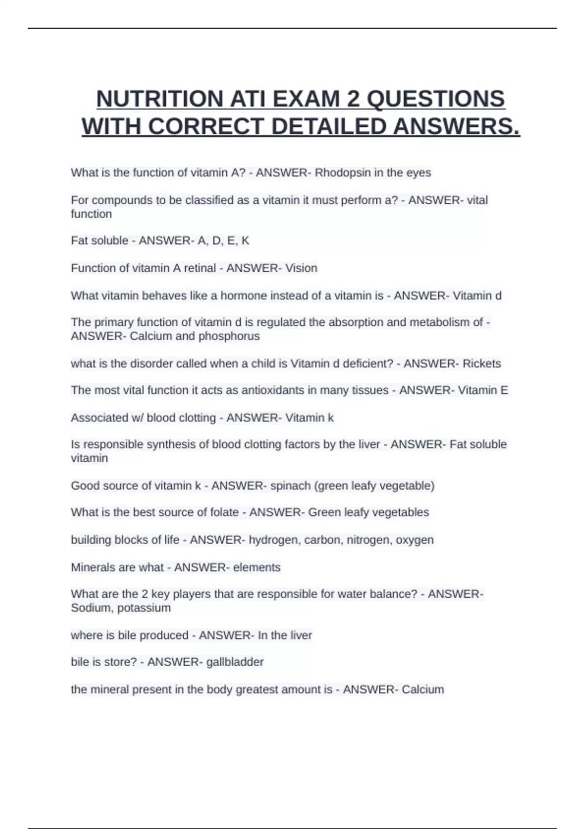 Associated w/ blood clotting - ANSWER- Vitamin k