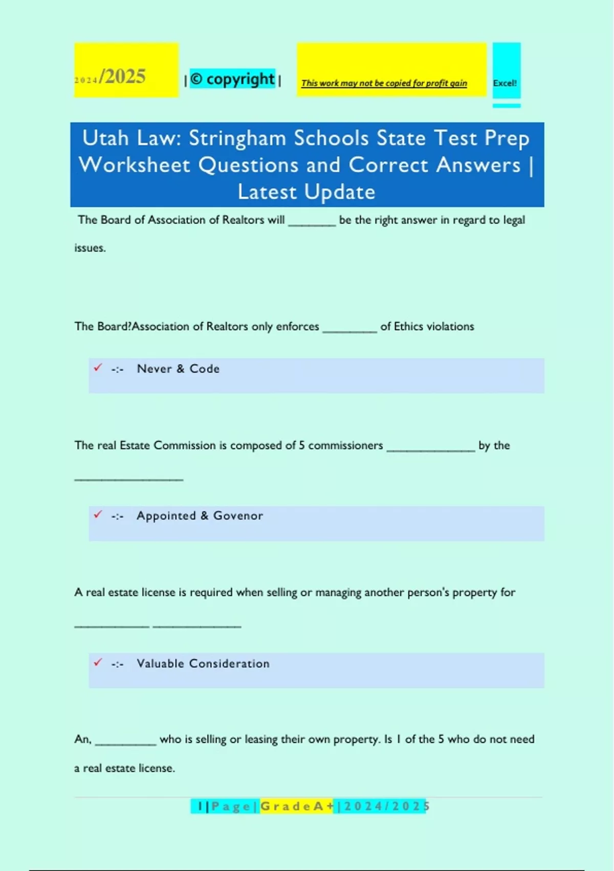 , 2024 /2025 | © copyright | This work may not be copied for profit gain Excel!